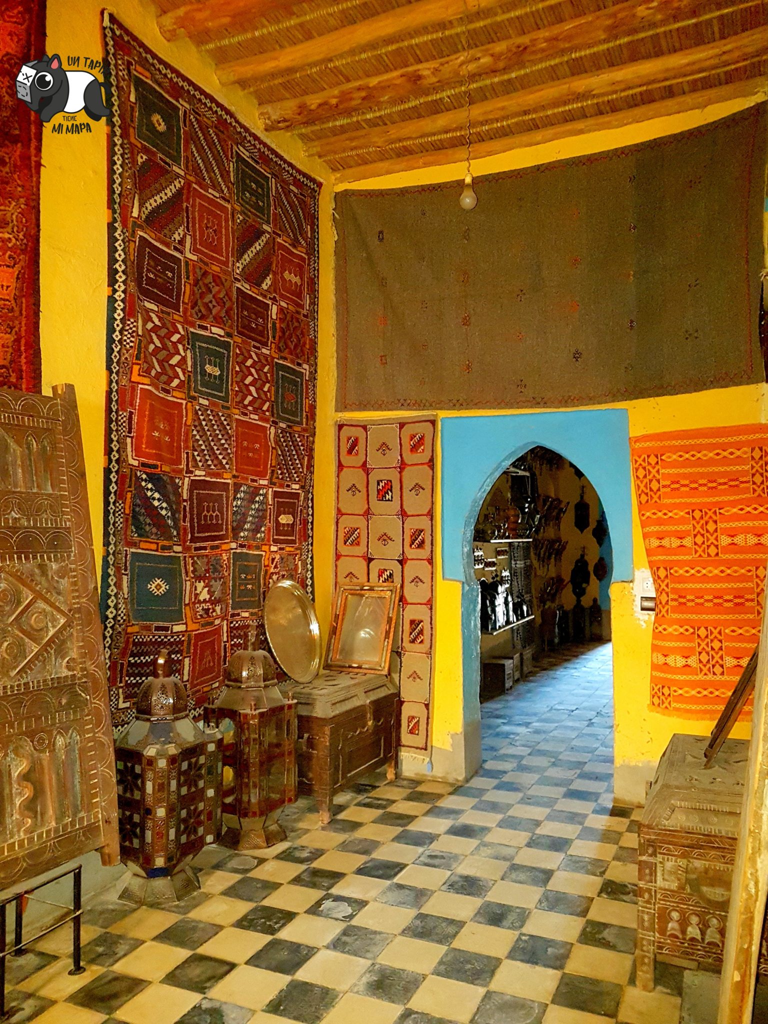 →Entramos en lo que ahora es una tienda de productos tradicionales marroquíes, pero nos cuentan que años atrás fue una haima gigante que dentro tenía un gran mercado regentado por judíos, en el que se vendían tanto alimentos como productos cotidianos (alfombras, utensilios de cocina…). Aquí hacían parada mercaderes de todas las procedencias. Estaba muy cerquita de Merzouga, tengo apuntado que se llamaba Assir Bir, pero no logro encontrarlo en los mapas :(. Si preguntas a un lugareño, seguro que te sabe indicar.