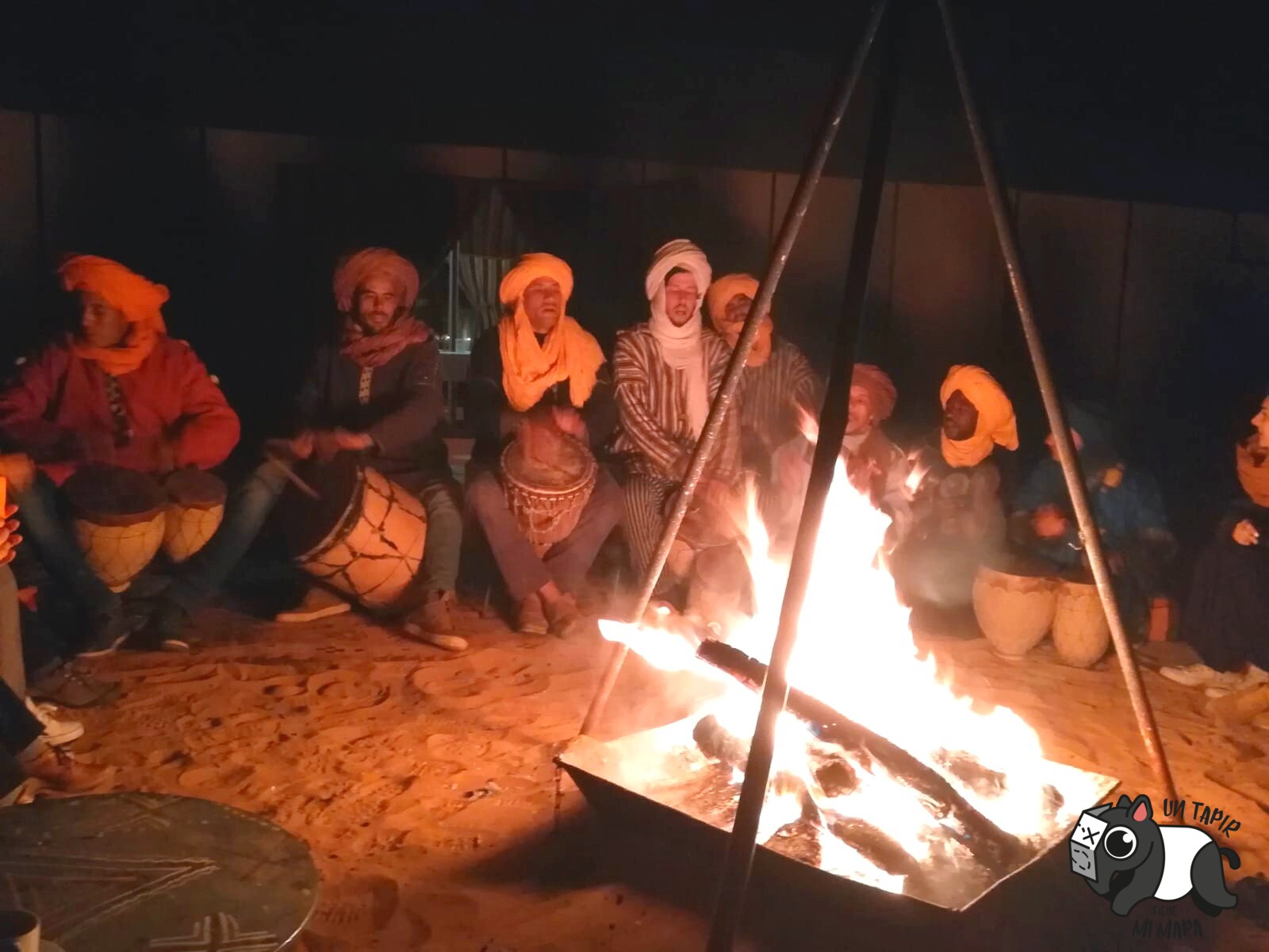 Damos una vueltecilla por las instalaciones y llega la hora de cenar comida típica bereber para después, con la barriga llena, cantar y tocar instrumentos tradicionales alrededor de una hoguera.